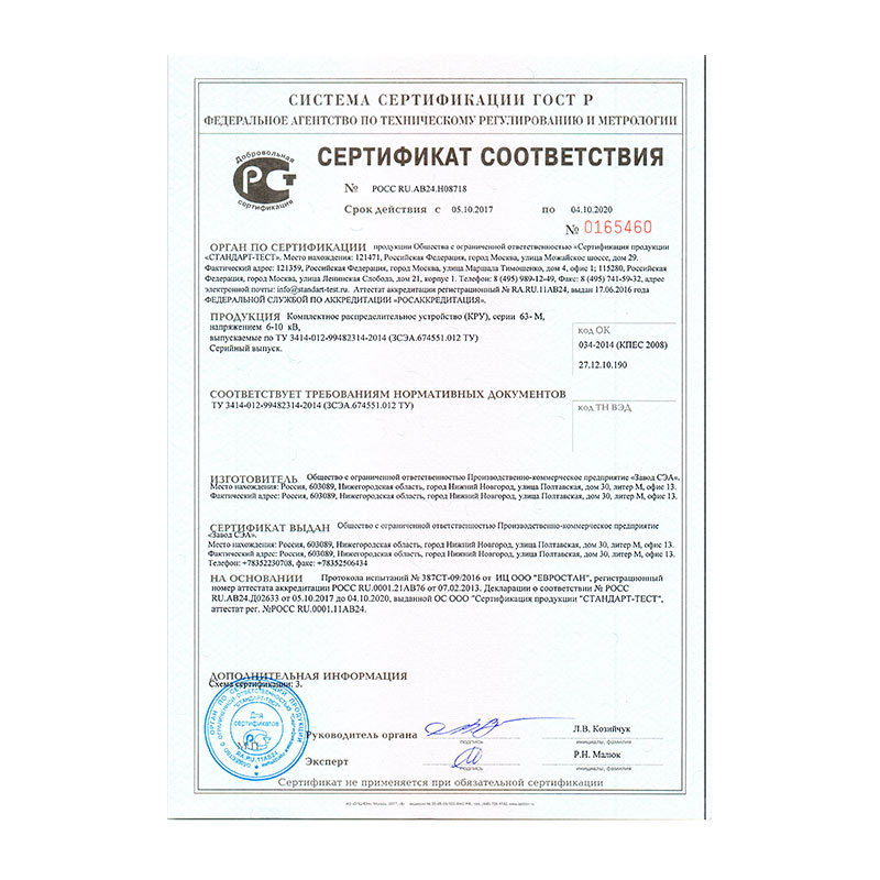 Устройства комплектные распределительные серии КРУ К-63 предназначены для работы в электрических установках трехфазного переменного тока частоты 50 и 60 Гц и номинальным напряжением 6 и 10 кВ для системы с изолированной или заземленной через дугогасящий реактор нейтралью и соответствуют техническим условиям БКЖИ.674551.011 ТУ.