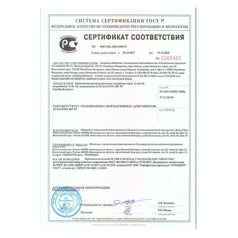 Устройства комплектные распределительные серии К-104МФ (с фарфоровыми изоляторами) предназначены для работы в электрических установках трехфазного переменного тока частоты 50 и 60 Гц и номинальным напряжением 6 и 10 кВ для системы с изолированной или заземленной через дугогасящий реактор нейтралью и соответствуют техническим условиям ЗСЭА.674551.000 ТУ.