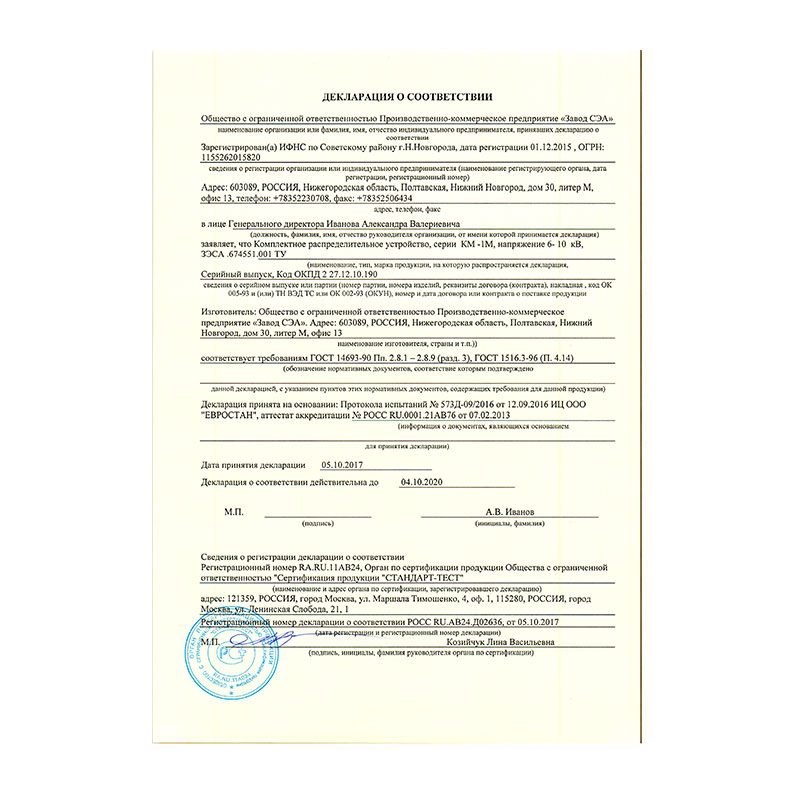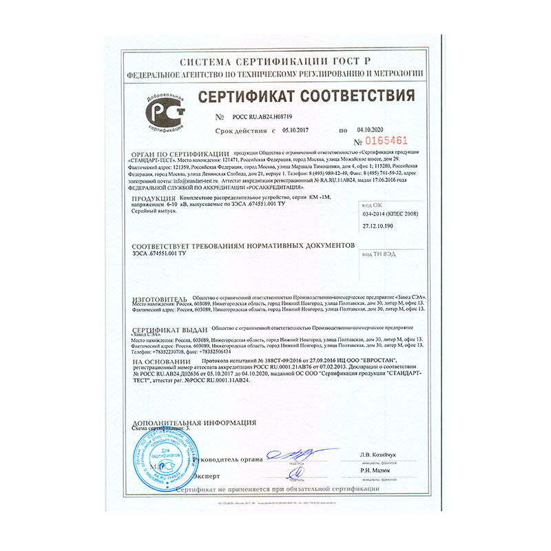 Устройства комплектные распределительные КМ-1М предназначены для работы в электрических установках трехфазного переменного тока частотой 50 и 60 Гц, номинальным напряжением 6 и 10 кВ в сетях с изолированной или заземленной через дугогасящий реактор нейтралью и соответствуют техническим условиям ЗСЭА.674522.001 ТУ.