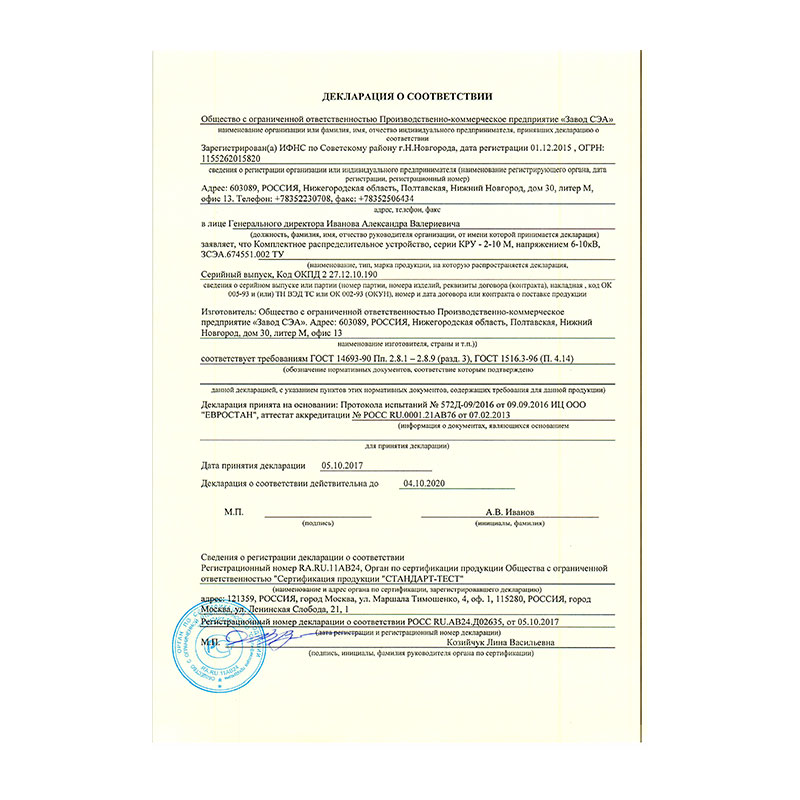 Степень защиты соответствует состоянию КРУ при закрытых дверях шкафов и релейных отсеков. При открытых дверях их степень защиты IP00 по ГОСТ 14254.